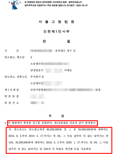 원고는 피고의 계약 위반에 대해 실질적 배상을 확보했고, 법원은 원고의 업무범위·실질적 기여를 명확히 인정했습니다.